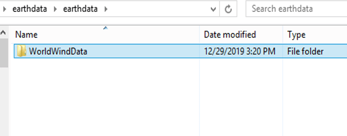 2) Unzip the earthdata.zip file on your desktop (it is over 700 MB in size so it will take 5-10 minutes depending on the speed of your computer) – then go into it and find the WorldWindData directory as show below.