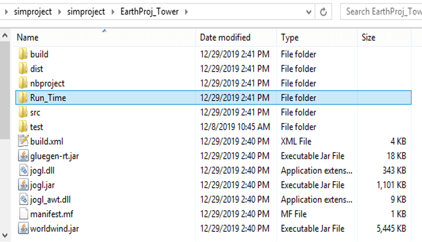 If you would like to just run the executable on your desktop – without using the NetBeans IDE – to see the demo simulation, then you’ll need to download the earthdata.zip and simproject.zip files from the links below to your desktop. The assumption is that you’re running a Windows 64-bit operating system.