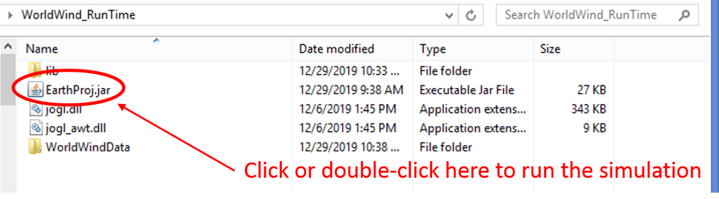 3) In the Run_Time directory, double-click on the EarhProj.jar file – as shown below – and the simulation will begin. If you have any problems, feel free to email me at my contact email address at the end of the article.